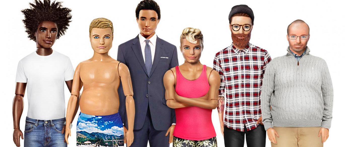 Embora não tenha sido obra da Mattel, também os Ken, diz o site Standard, foram alvo de uma transformação, que inclui novos tamanhos, cabelos afro, barba e o pneuzinho eternizado por Leonardo DiCaprio – conhecido como dad bod.