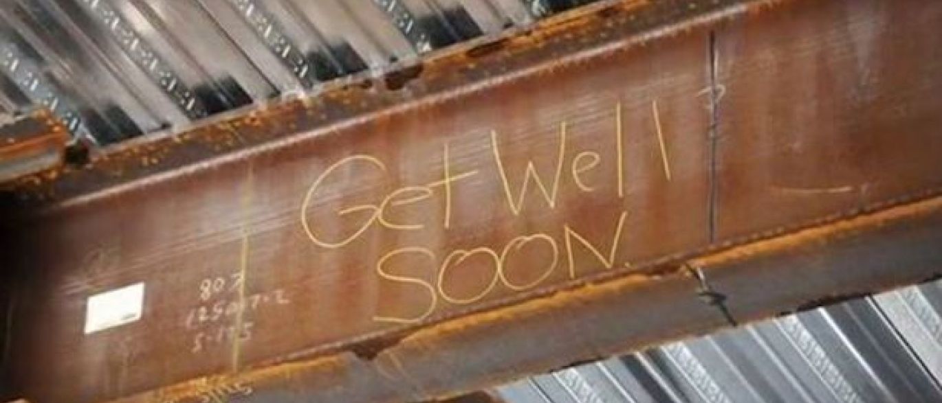Depois de se aperceberem do fascínio da menina decidiram surpreendê-la com uma mensagem carinhosa: Melhora rapidamente, escreveram os funcionários numa viga, visível através da janela do quarto onde está internada.